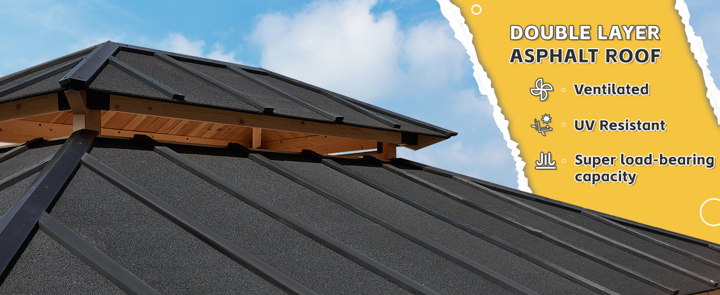 - ☀️【Special Asphalt Roof】- Different from metal roofs, asphalt roofs would not rust, corrode, no maintenance need and blend perfectly into the garden environment.Asphalt is good at waterproof, can reduce the noise caused by rain.