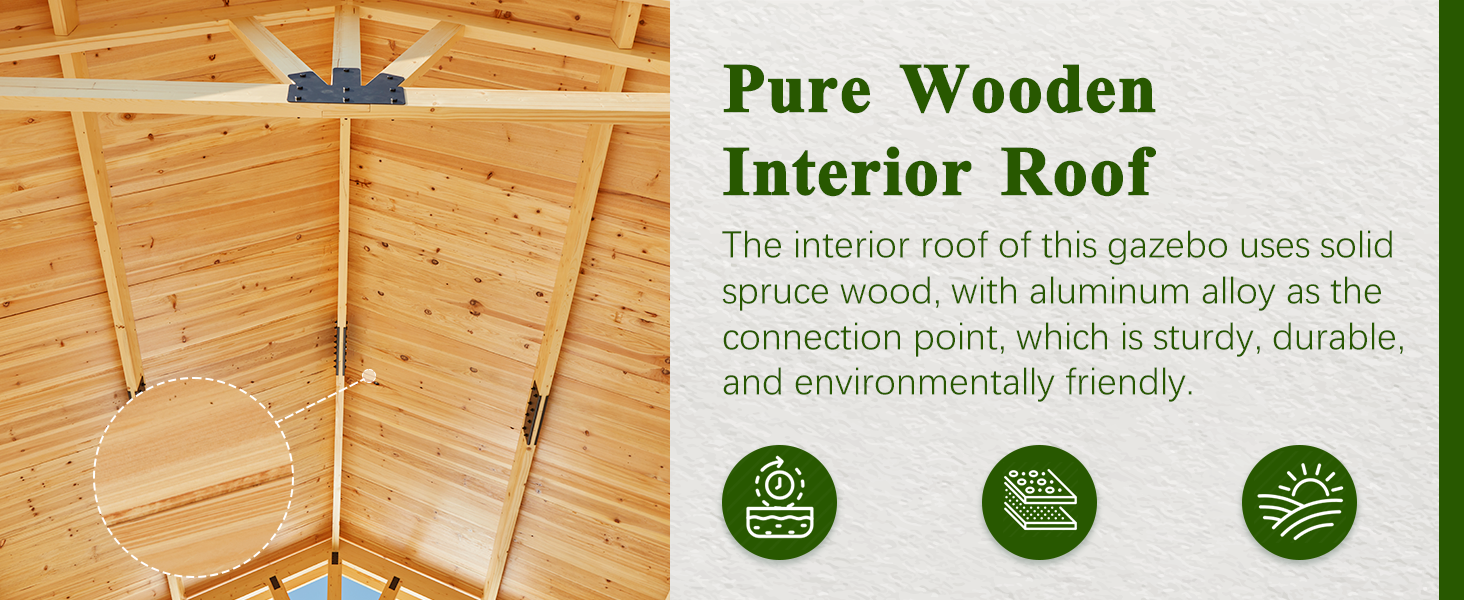 • ☀️【Natural Spruce Material】- Made from premium spruce wood, our patio gazebo retains its original wood texture while also being treated with oil immersion and coating to resist corrosion, rain, snow, and wind. This increases the life and stability of the wood, making it a durable choice for outdoor use