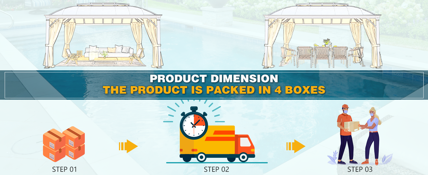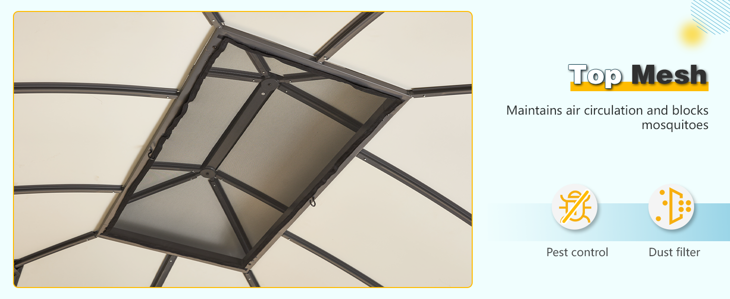 - 【ARC TOP DESIGN】The curved roof design is not only more elegant but also provides a wider space and avoids the accumulation of rainwater. The double-top design is also more conducive to the circulation of air. This outdoor gazebo is sure to add a splash of color to your backyard.