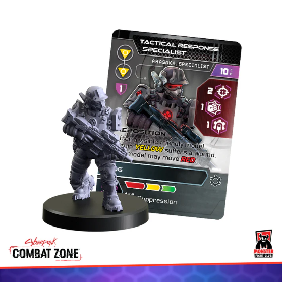 This box set includes all the miniatures and cards you need to field a complete Arasaka starter gang in your games of Combat Zone!