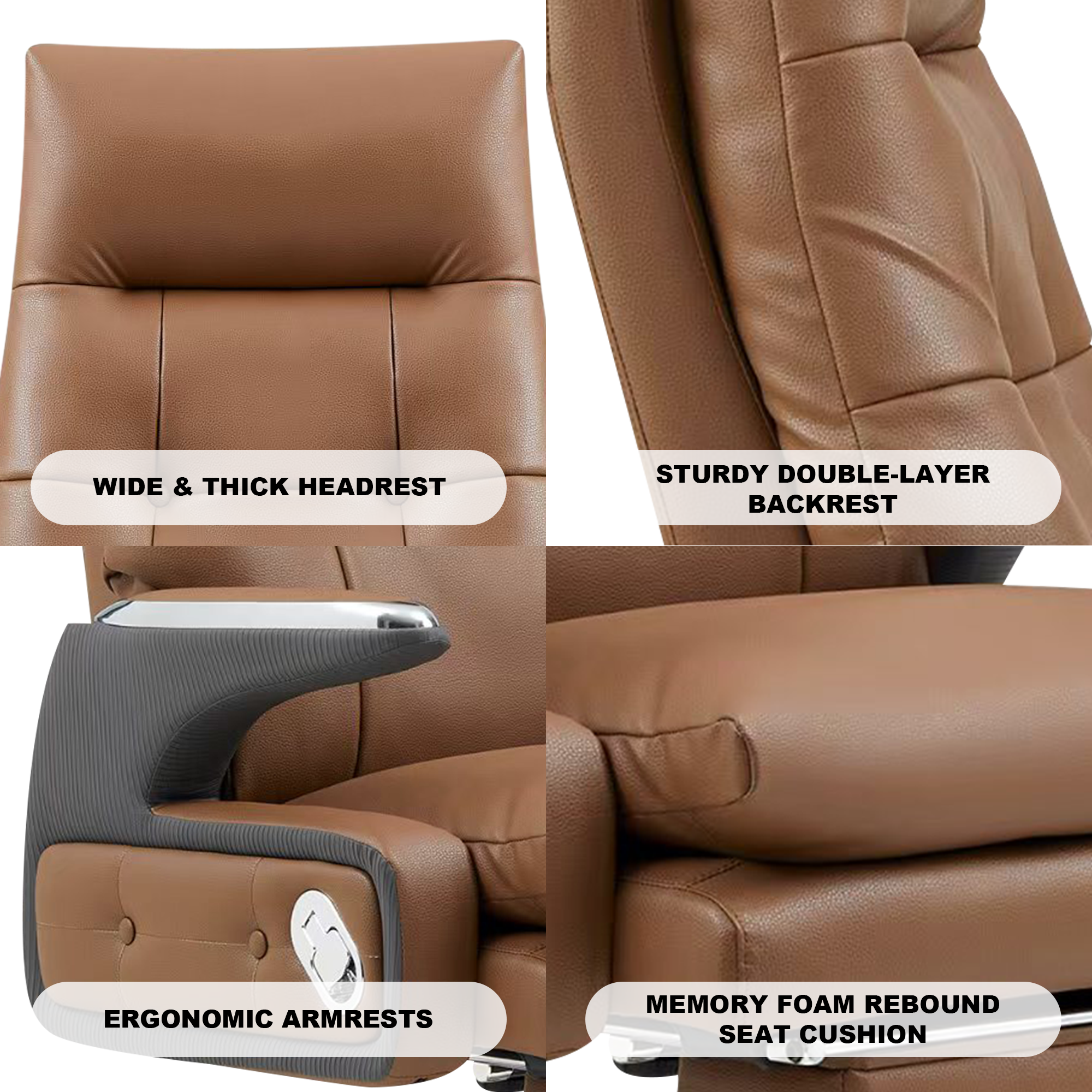 Ultra-soft and comfortable – Experience all-around comfort with a wide, supportive headrest, ergonomic armrests, a double-layer backrest, and a memory foam cushion that adapts to you.