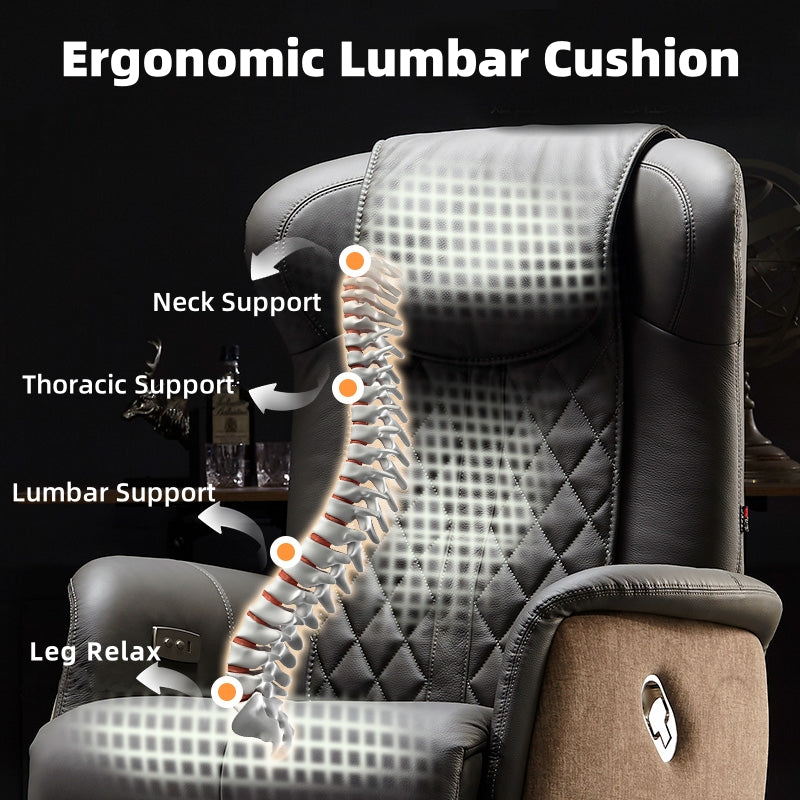 The Massage Office Chair is your premium solution for comfort and productivity. Crafted with high-density memory foam and full-grain leather, Ettore offers not only an elegant appearance but also advanced lumbar support and full-body relaxation. The heated backrest and built-in massage functionality help reduce fatigue, while the smooth electric recline lets you find your perfect angle between 90° and 160°. Designed for both home and executive office environments, Ettore enhances posture, circulation, and overall well-being.