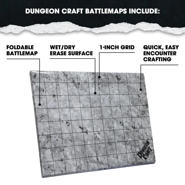 Each 24”x33” custom TTRPG terrain map features 1" squares, making it perfect for fantasy tabletop terrain. Laminated for wet-erase and dry-erase compatibility, these customizable terrain maps are compatible with the Dungeon Craft series for Dungeons and Dragons, Pathfinder, Warhammer 40k, Shadowrun, and other TTRPGs.