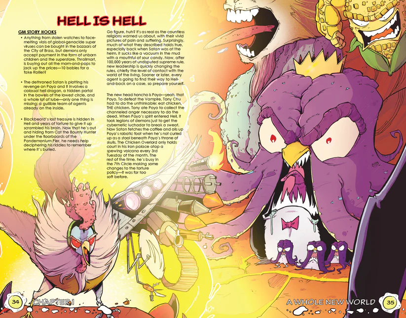 Blows the door open on new weird agencies to work for (National Weather Service, anyone?), detailed locations from the comics, and greatly expands the factions you can introduce in play. It also adds rules for playing criminals, mercenaries, as cybernetic animals (in more detail), and even characters from the far future. Contains an estimated 250 pages loaded with art from the comics.