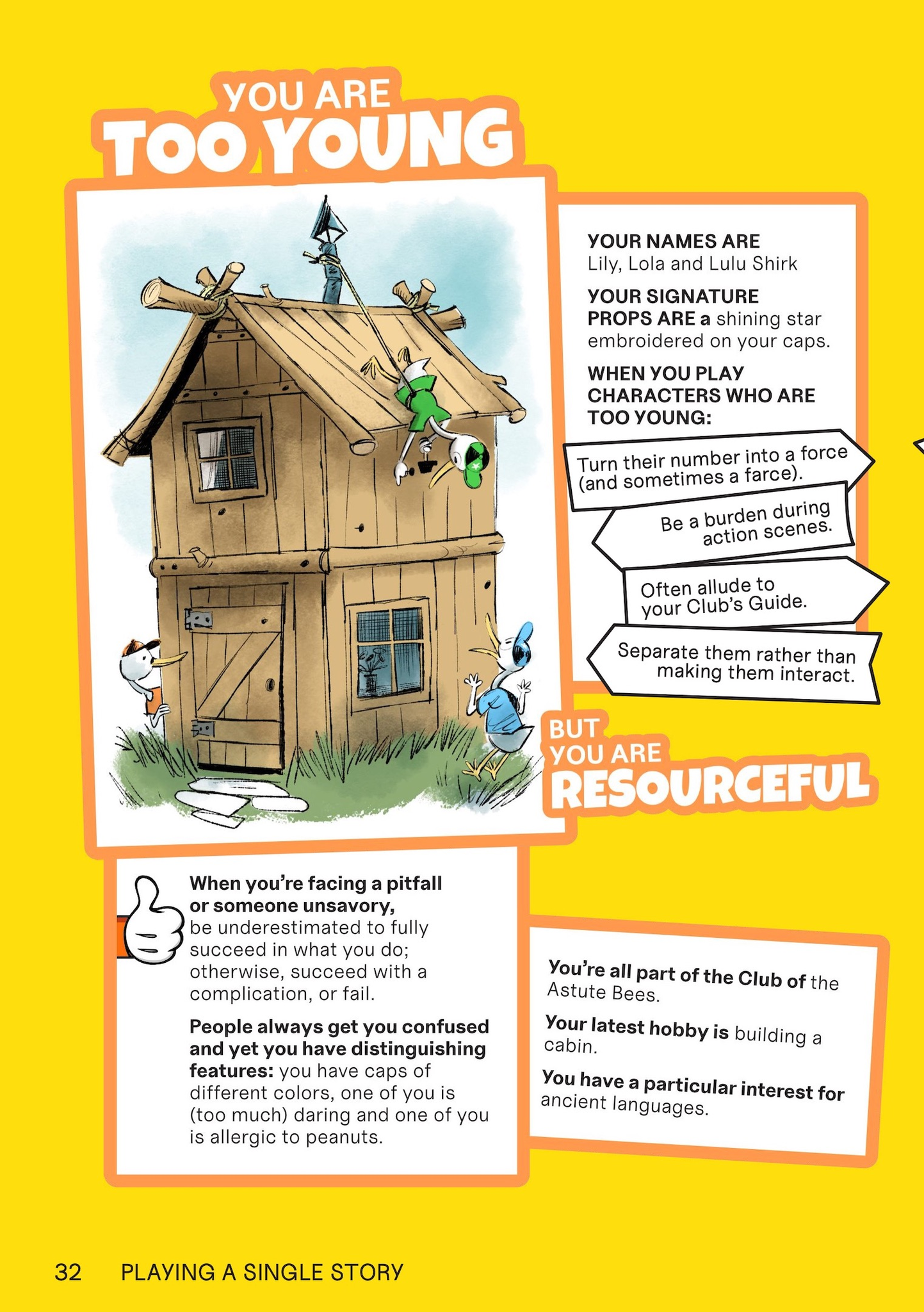 - 12 prewritten character types: the stingy (but good-hearted) one, the bad-tempered (but selfless) one, the ones too young (but resourceful), the shy (but generous) one, the absent-minded (but brilliant) one and the dumb (but fearless) one… and many others!
