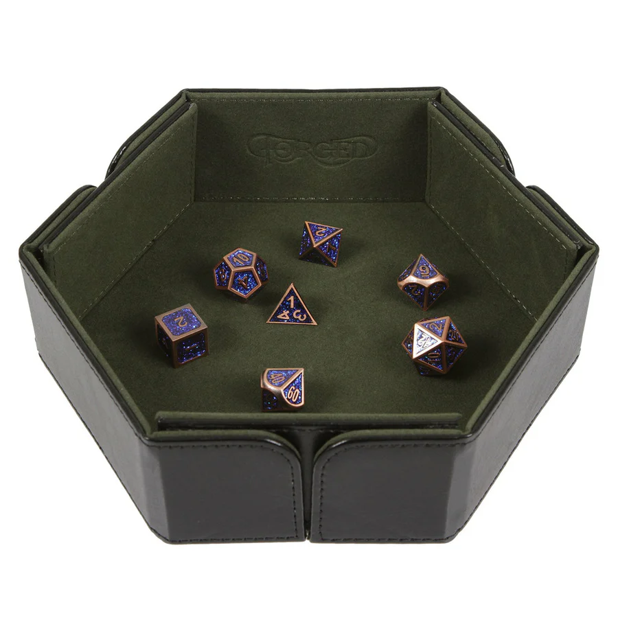 Use and display your dice with the honor and pride they deserve with the Forged Gaming Magnetic Folding Dice Tray.