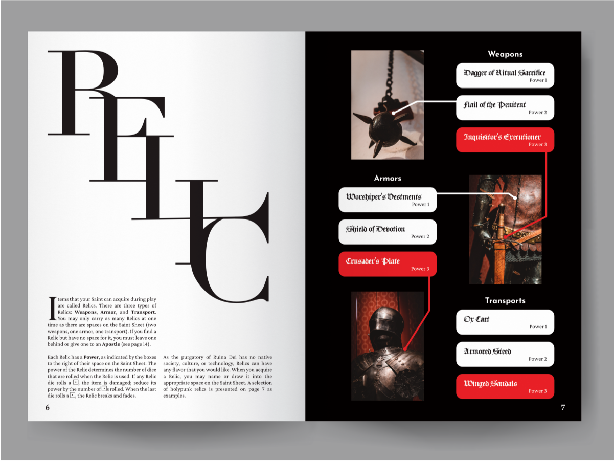 You will not be the only one looking for them. Other living saints of other dead gods travel the cracked surface of Ruina Dei, their eyes scouring the sunless sky above, waiting for the next godfall. When they spot a falling god, they race toward it, hoping to be the first to pillage godsparks from the corpse as the god’s last bits of energy spawn new saints and angels.