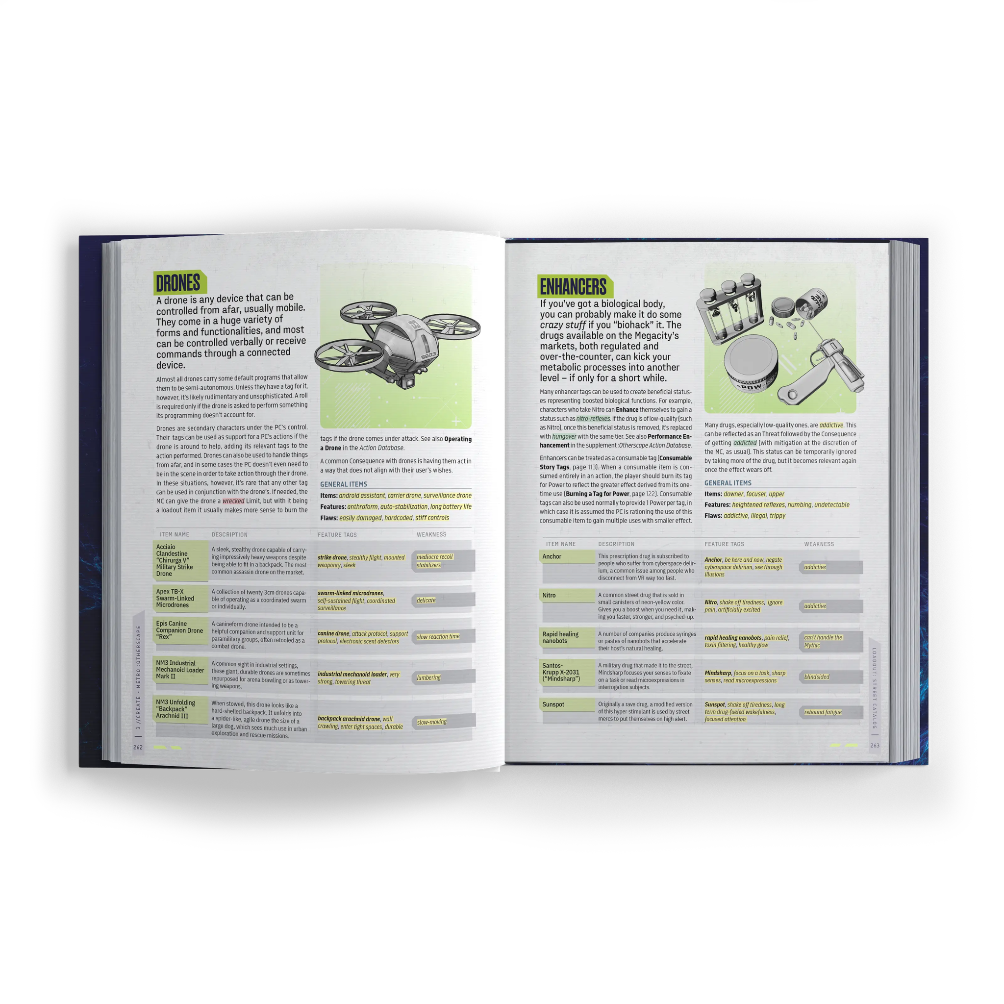 //CREATE - A character creation and evolution guide including 14 themebooks and over 112 ready-to-play theme kits, with rapid and full-custom character creation options as well as a series setup guide, a megacity generator, and an extensive gear catalog.