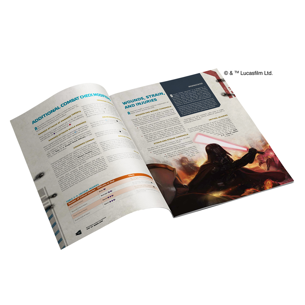 The Star Wars™: Age of Rebellion™ Beginner Game is the perfect entry into the Star Wars: Age of Rebellion roleplaying experience for players of all skill levels. With its complete, learn-as-you-go adventure, players can open the box and immediately dive into their roles as members of the Rebel Alliance, desperately fighting against the superior might of the galactic Empire. Pre-generated character folios keep the rules right at your fingertips, while custom dice and an exciting narrative gameplay system advance your story with every roll.The Star Wars: Age of Rebellion Beginner Game includes: 1 32-page Adventure Book, 1 48-page Rulebook, and 1 Introduction Sheet 4 Full-Color Character Folios 1 Full-Color Double-Sided Foldout Map 14 Custom Dice 9 Destiny Tokens, 33 Character Tokens, and 7 Vehicle Tokens