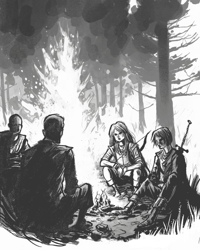 This is a rules-light game, intended to focus on rulings, not extensive rules, where adventuring and life are hard and challenging.