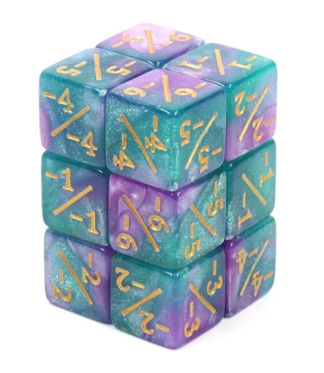 "Candy Nebula" - Blue-Green and Pink with Glitter - Counter Dice (12) - Level One Dice