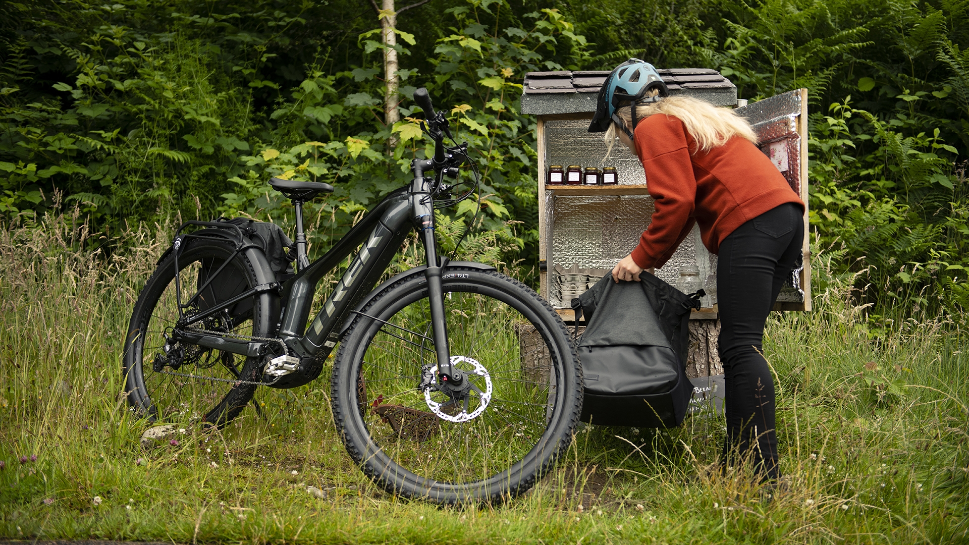 - Treks Removable Integrated Battery (RIB) system looks great and is super user-friendly: it fully hides the battery in the frame for protection, makes it easy to remove the battery without tools, and lets you mount a water bottle cage — even on full suspension e-MTBs