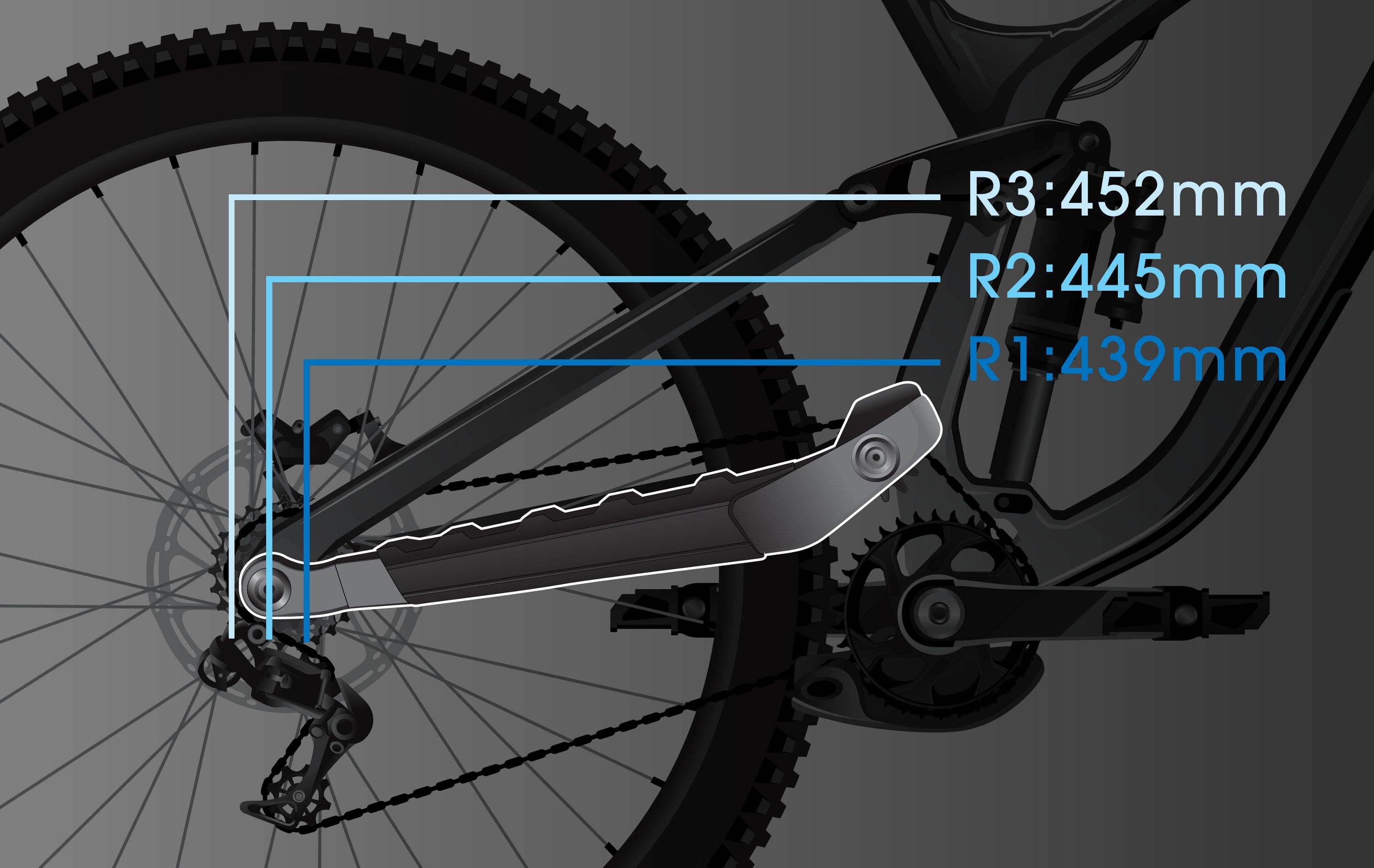 The chainstay length, or rear center, grows as the frame reach grows so you get balanced weight distribution no matter your frame’s size. High-speed control and big mountain fun for everyone.