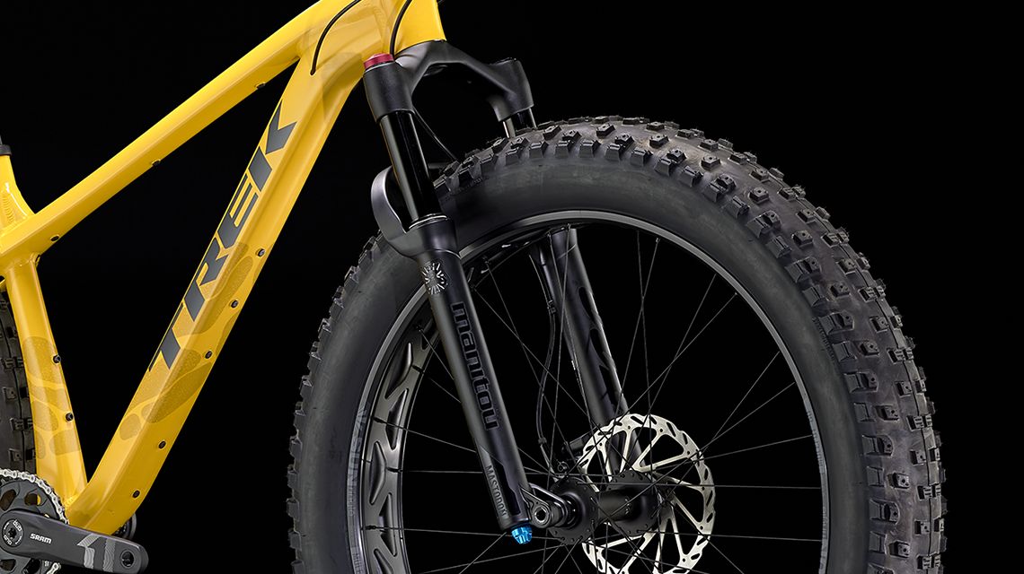 Farley 7 comes loaded up with 80mm of front suspension to take the edge off rough terrain. It also slackens the head angle for a more stable ride when the trail gets steep.