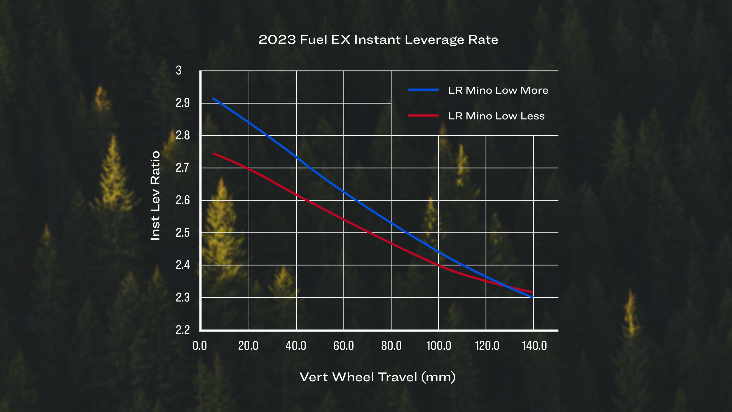 Adjust leverage rate with just a flip of a chip. Ride it in the Less progressive setting for a plusher feel perfect for rugged trails with square-edge bumps. Flip it to More progressive when youre hitting big features and don’t want to bottom-out, or when you want to run a coil shock.