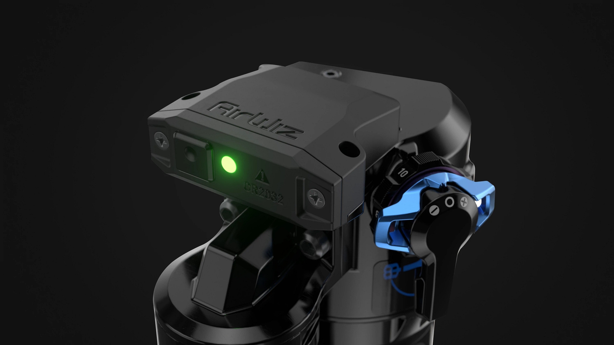 TyreWiz monitors your tire pressure while AirWiz monitors your fork and shock pressure. Set your desired pressure in the SRAM AXS app and then just check the lights before each ride—red means you need a pump, green means go ride.
