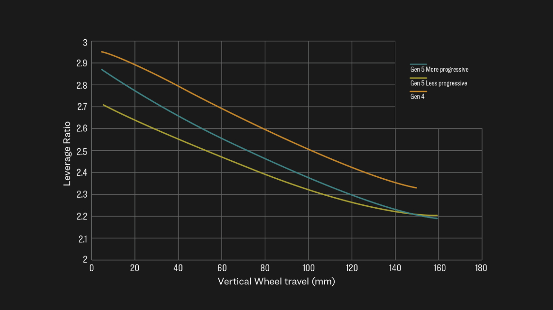 Adjust leverage rate with just a flip of a chip. Ride it in the Less progressive setting for a plusher feel perfect for rugged trails with square-edge bumps. Flip it to More progressive when youre hitting big features and don’t want to bottom-out, or when you want to run a coil shock.